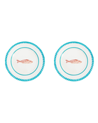 Llenos de encanto y un toque lúdico, los platos de postre Gone Fishing son un homenaje a la ligereza del verano. Pintados a mano por artesanos colombianos, cada plato presenta delicadas ilustraciones llenas de fantasía que evocan costas bañadas por el sol y tardes tranquilas junto al mar.